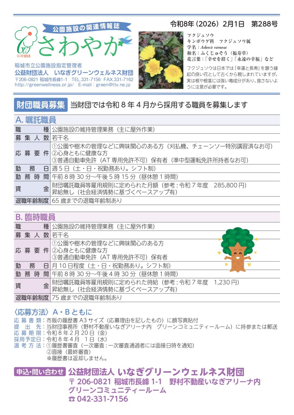 そこで、公益財団法人いなぎグリーンウェルネス財団を設立し、稲城市の都市緑化を推進し、市民の健康増進に貢献します。